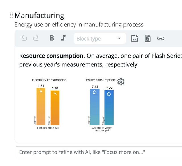 Bring your Digital Product Passport to life through images, links to external websites, text formatting, and more using an integrated rich-text editor